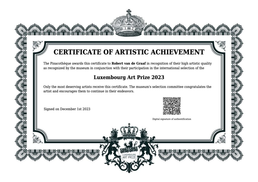 Since 2012 he is devoting himself entirely to his career as a visual artist. He has since produced a large body of work, consisting of theme-based series of artworks which are exhibited in numerous online and physical exhibitions, like his solo exhibition at the ‘Salon des Arts’ in Maastricht, the Netherlands, in 2023. The exhibition was curated by Ad Himmelreich, curator and former conservator of the Bonnefantenmuseum (Maastricht, NL) and he wrote an essay about the artworks of Robert.